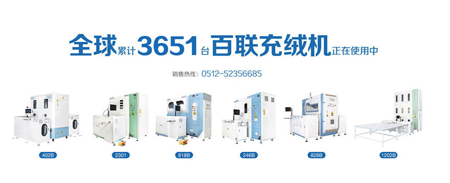 主展產品:618C全自動四口流量法充絨機; 402B全自動稱重充棉機