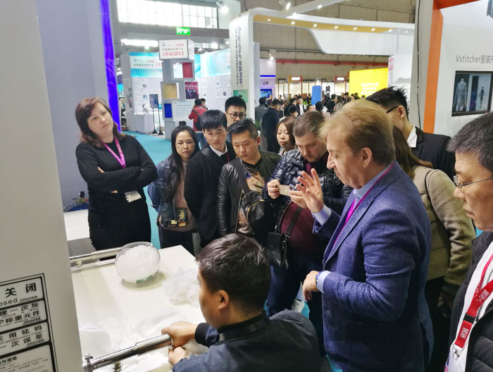 今年的CHIC春季展會,匯聚21個國家和地區的1213家展商、1372個品牌同場競技,全部展出面積約10.72萬平方米,吸引了超10萬人次參觀。展會期間,百聯充分展示了自動填充領域科技企業實力,“秀”出了包括X型模塊化充絨機、402D型絨棉一體機、P505S型自動發包機等在內的全新重點產品。