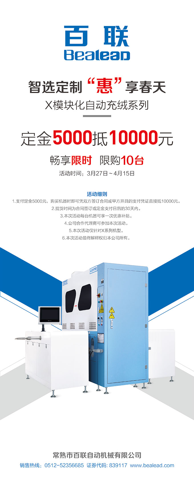 百聯(lián)專門推出了針對(duì)X模塊化自動(dòng)充絨系列產(chǎn)品的限時(shí)優(yōu)惠購(gòu)機(jī)方案,即每臺(tái)機(jī)器均可享受一次“定金5000抵10000元”的優(yōu)惠購(gòu)機(jī)補(bǔ)貼。對(duì)此,現(xiàn)場(chǎng)反應(yīng)熱烈。