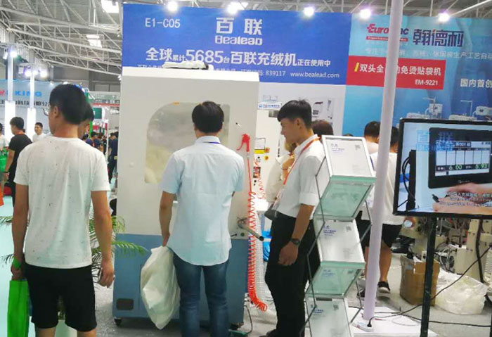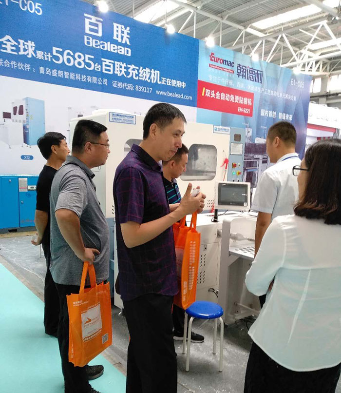 本屆青島展會以“貿易、綠色、智能化、解決方案”為主題。百聯亮相E2館的C05展位,重點展示了全新推出的2601X型模塊化自動充絨機、102B迷你機型以及經典的402D雙口絨棉一體機,繼續鞏固自身在纖維自動填充設備領域的地位。
