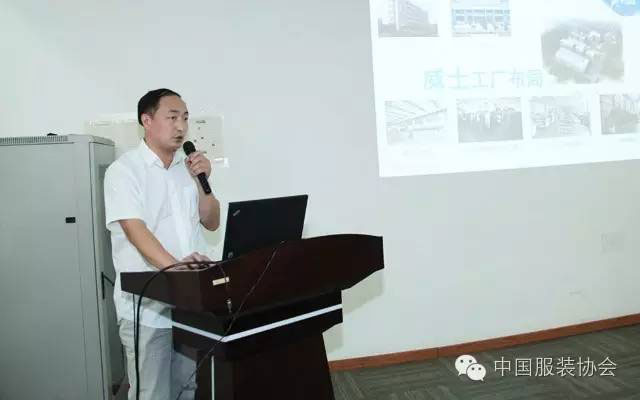 以鄭州領秀·夢舒雅為代表的鄭州服裝產業集群,是以女褲為主要產品發展起來的產業集群,目前,女褲產品仍然是其主要產品。針對這一產業特點,上海威士機械有限公司工程師李振寶向與會企業家介紹了他們的“褲裝自動化集成系統”。通過深入淺出的講解,使參會代表對這套自動化集成系統的運作原理及管理流程有了初步的了解,隨后,他還介紹了該公司的“自動貼袋機”等產品。